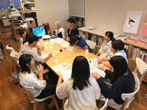 子どもデザイン教室の夢。いつか受講生がここで働き始め、その子たちがまた次の世代を育てる。。。その端緒となればと願いつつ、今月から高校生たちがアルバイトを始めています。その学生たちが役立っています。私とは違って若い感性が魅力です。