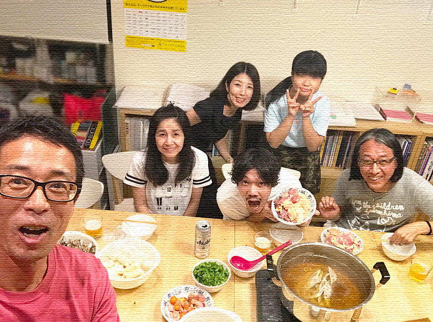 理事の方から比内地鶏のお鍋セットを頂戴しました(お鍋に使う白神山系の水、出しガラ・野菜・さらには指南書つきで!)。東京のソーシャルデザイナー・福島治さんらと次年度の新企画会議をしてから、急遽集まってもらったスタッフ、家族と鍋パーティ。嬉しかったです。