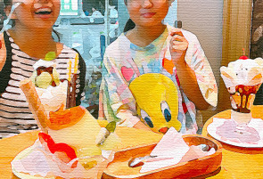 ④バイターンレッスン。住所録の打ち込み作業や蓬莱さんのイラストを作画しました。ワープロ打ちにはめげていましたが、久しぶりの描画作業には嬉々として挑んでいました。レッスン終わりに受講生のプチお誕生日会もしました。