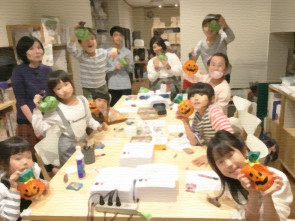 造形工作レッスンでは今日のおやつは秋味パフェ!まずはハロウィンカラーの白玉作り、ハートや星を上手に作る子も。ゆであがる間に、カボチャケーキに生クリームを絞ったり、ゼリーを飾ったり。みんなで楽しくデコレーションしました。