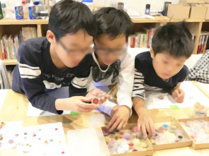 グッズデザインレッスンではレジン作りの最終回。ゴム型枠のできた子から、順次、大きめの底ありペンダントや型枠のみのペンダントでレジンを作りました。来年度は工夫を重ねてさらに深みのあるレジン作りを目指す予定です。