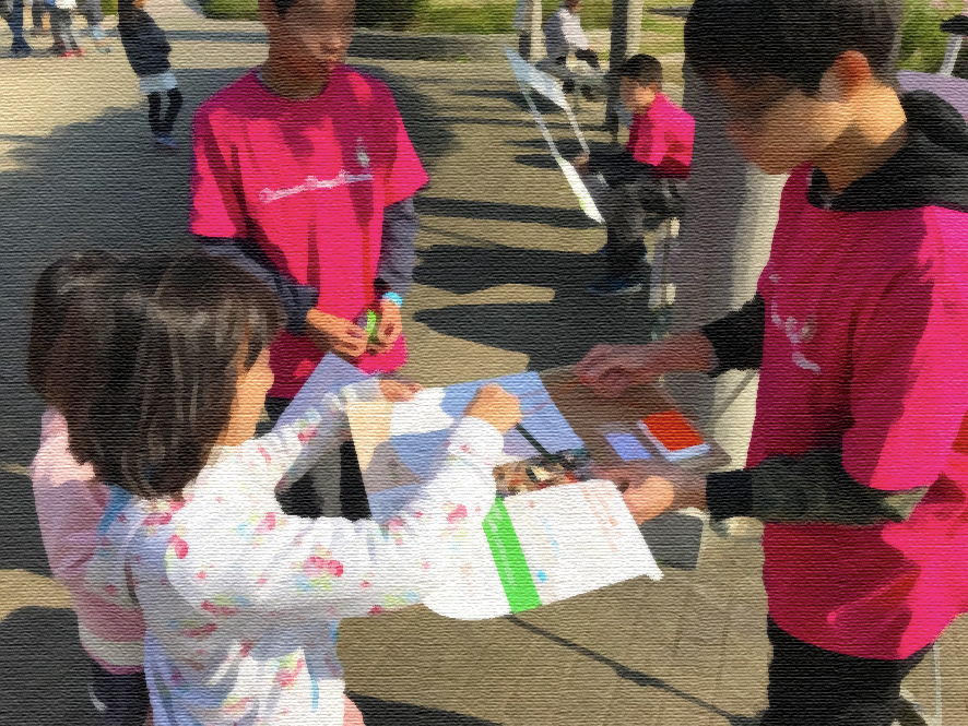 4日㊏・5日㊐、長居植物園で開催の「NAGAI ART STAGE 2017」で子どもデザイン教室は、中学生レッスン生たちとデザインしたユニークなスタンプラリー & クイズラリーを出展しました。