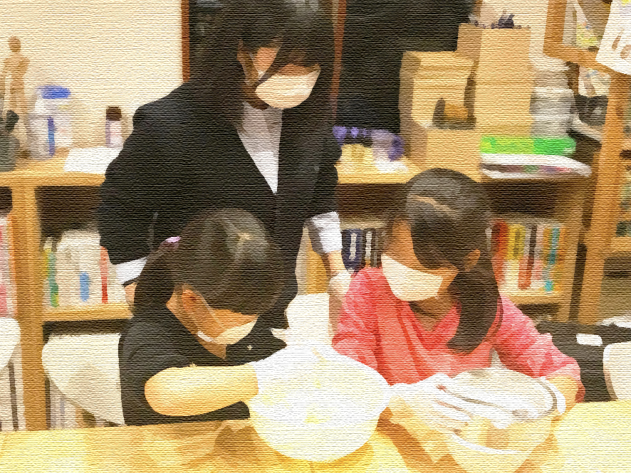 毎月第3土曜日は、グッズデザイン特別レッスンの日。社会的養護児童専用の無料レッスンです。今回はお菓子作り。自分のゆるキャラをモチーフにクッキーを作ります。焼き上がりの間に、大阪ガスさんからご依頼頂いたイラストを描きました。