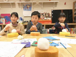 2018年のレッスンが始まりました。正月ボケの私にも、子どもの元気と笑顔に接すると、いきなりぴりっ!と通常モードに戻れました。今月はお人形作り。アクリル糸を針で突いて、自分のキャラクターのお人形にします。緊張感をもって全員が集中してお仕事できました。