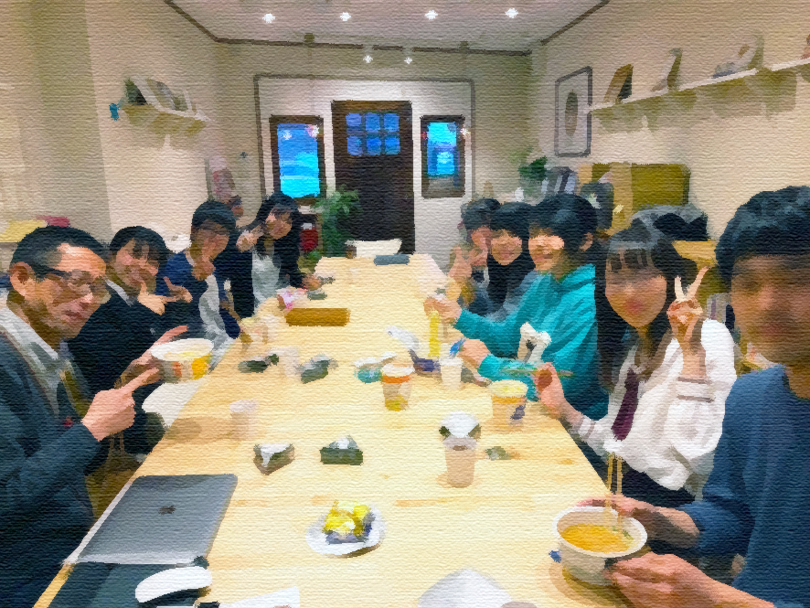 牛骨ラーメンチェーン店・まこと屋を展開するマコトフードサービスの経営発表会にお招き頂き、子どもデザイン教室の活動を講演しました。まこと屋さんとは協同で児童養護施設を訪問し、ラーメンと似顔絵を振る舞うボランティア活動をしています。