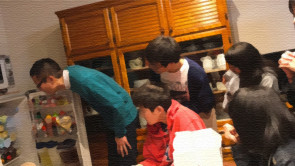 4月6日に子どもデザイン教室は11年目の誕生日を迎えました。そのお祝いを講師のあおいさんはじめ、子どもたちにしてもらいました。子どもらが「冷蔵庫の扉が開けへん!たかさん直して!」と言われ、思いっきり開けると、中にはモロゾフのプリンとメッセージカード!