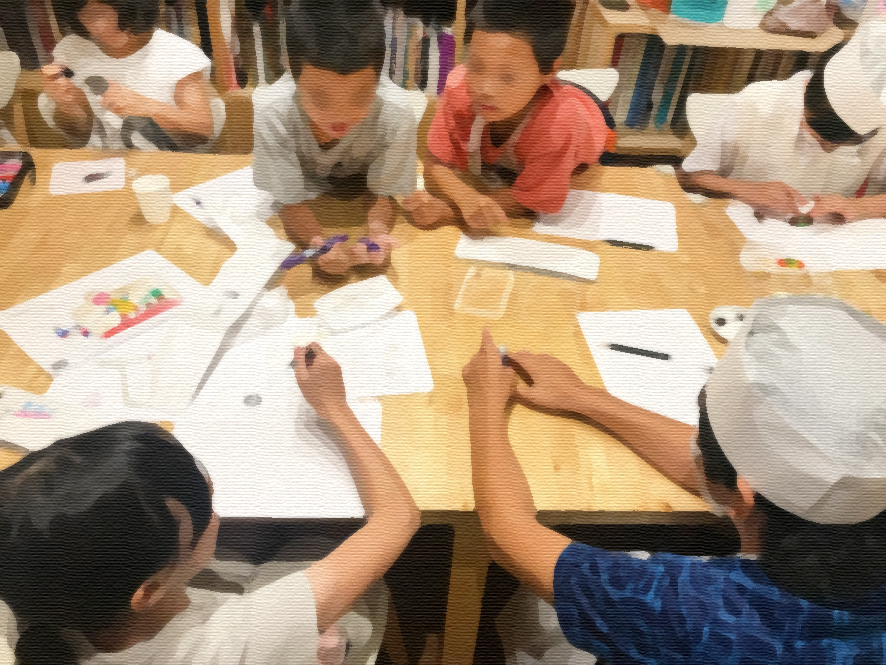 試作のクッキー作りが早く終えた子ら、自分たちの絵本の文字原稿をどうするか?を自発的に話し合っています。普段は仲違いが多く、騒々しい子らが、繋がりのある絵本にしようと自ら力を合わせています。相変わらず、騒々しいやりとりでしたが、私には心打たれた一コマでした。