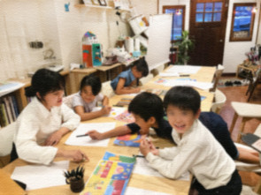 10月のレッスンです。絵本の製品化に向けて、文章の不具合を皆で検証し、辻褄を合わせ、意味が通じるようにしました。新しく文章を加えるなど、話合いは白熱。沢山のアイデアを出して自分の意見を主張します。真剣に内容を話すその姿に子どもたちの成長を感じました。