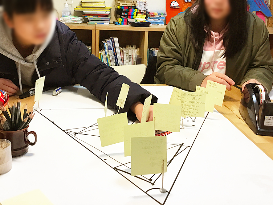年内最終の対話デザインレッスンはディベートゲームをしました。これは三角形のエリア内を指さして賛同の度合いを示すことで、議論の見える化するユニークなゲームです。インフルエンザなどで休みが多く、3人のレッスンになりましたが、結構盛り上がりました。