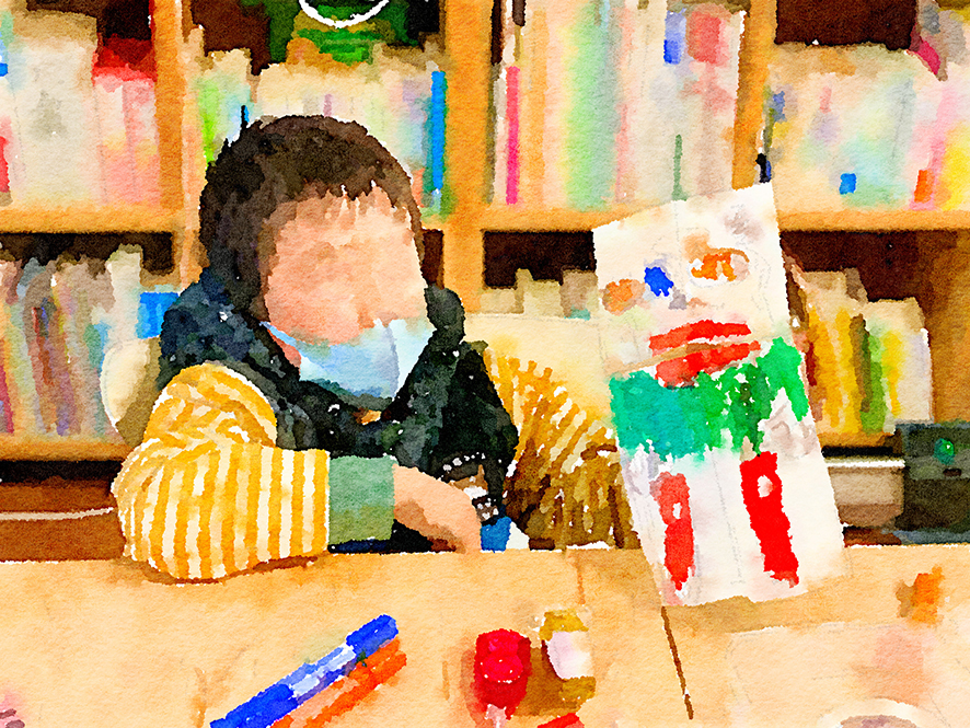 創造デザインレッスン。人気アニメを題材に、登場してほしいオリジナルキャラをiPadで描きました。皆ノリノリです。カラフルなキャラクターが生まれています。来週は牛乳パックを利用して人形を作り、人形劇をします。どんな人形劇になるのか楽しみです。
