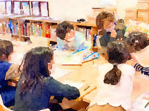 3年ぶりの大型企画、絵本作りをします。狙いは「自分の気持ちを絵本で伝えること」自己表現のレッスンです。最初にお気に入りの絵本を読んで、自分が感じたことを自己理解の視点から書きます。次に読み聞かせをし、皆で作者の視点を出し合い、他者理解の視点から観点の幅を広げます。