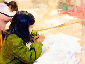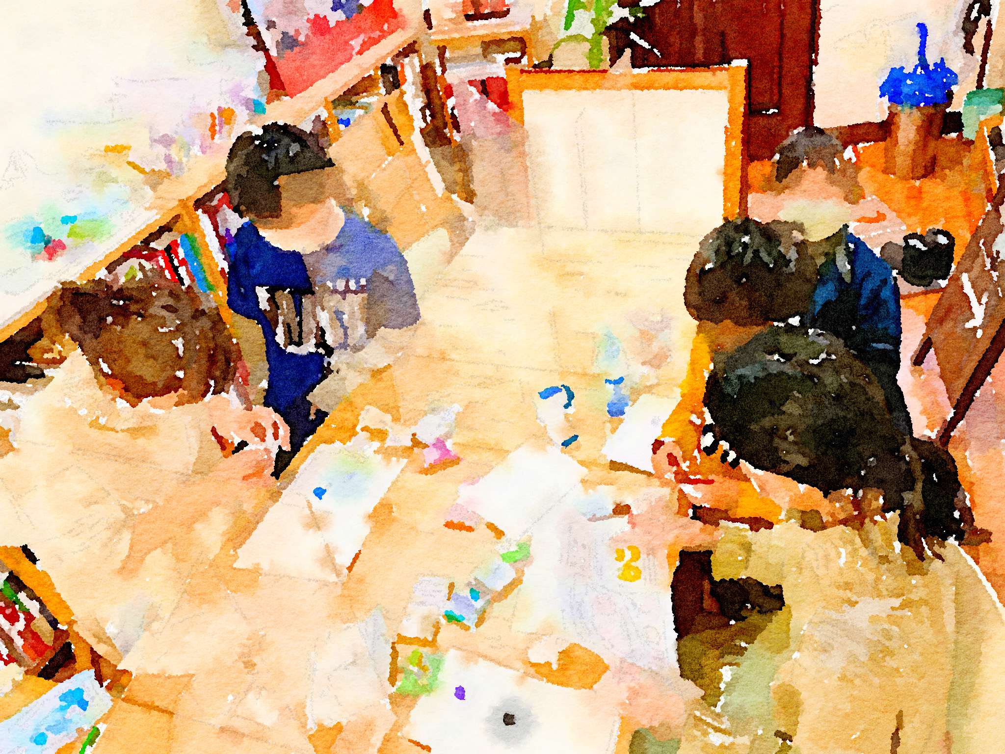 商品デザインレッスンの絵本作り。構想をまとめ、絵コンテを描き進めます。皆のお話が面白い!机一杯の原稿用紙に向き合う姿は逞しいです。レッスンを受けている子とそうでない子との創造力は大きな差を感じます。コロナ下の1年、めざましく子どもは成長しています。