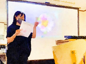 5月の施設出張レッスン。今回は名前の意味を題材に名前ピンバッジを作りました。各自が見本を参考に名前をイメージする絵を描き、それをフィモ粘土でピンバッジにすると、個性豊かな作品になりました。最後に発表をしましたが、レッスンの意図は伝わらず、設計の見直しが必要です。