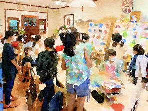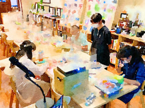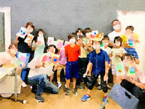 施設出張レッスン。楽しみながら自分の事を話すレッスンをしました。カードの表面には自分のマークを描き、裏面には好きなお菓子は?、1日魔法が使えたら?、10年後の自分に会えたら何という?などのクイズを書きゲームをしました。大盛り上りで会話を楽しむことができました。