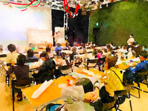 施設の子どもたちとの早めのクリスマス会(前半)。最初にコピー用紙を手だけでどれだけ高くできるかを競う世界一のペーパータワー作りをしました。2つ目はトーキングゲームと他己紹介。カードの質問に答え、その後2人1組になり、相手の答えを聞き出し、他己紹介をします。