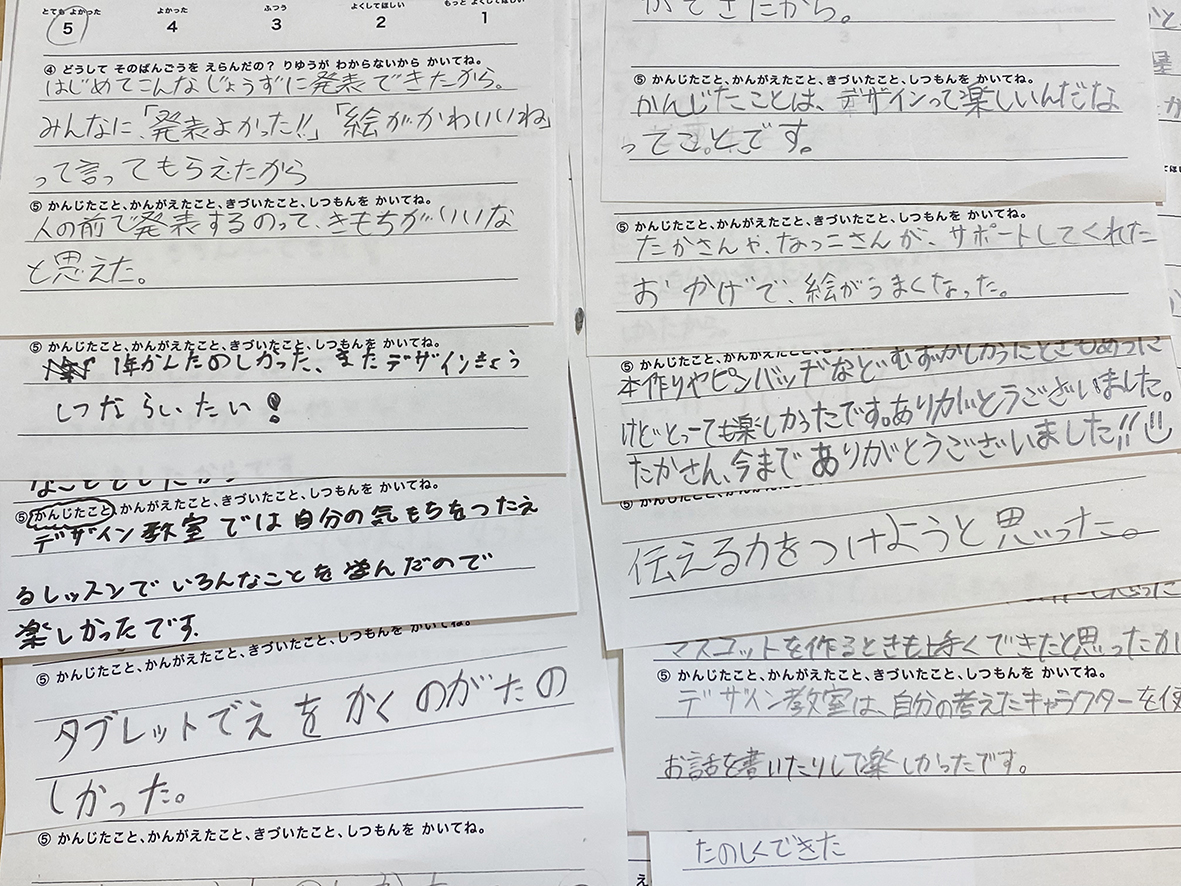 4月30日をもって子どもデザイン教室2021年度15年目のレッスンが全て終了しました。毎年この日だけに味わえるやりきった感に満たされています。毎年年初は1年間やり切れるかどうか不安一杯でスタートします。しかし、沢山の人に支えられて今年も走り切ることができました。