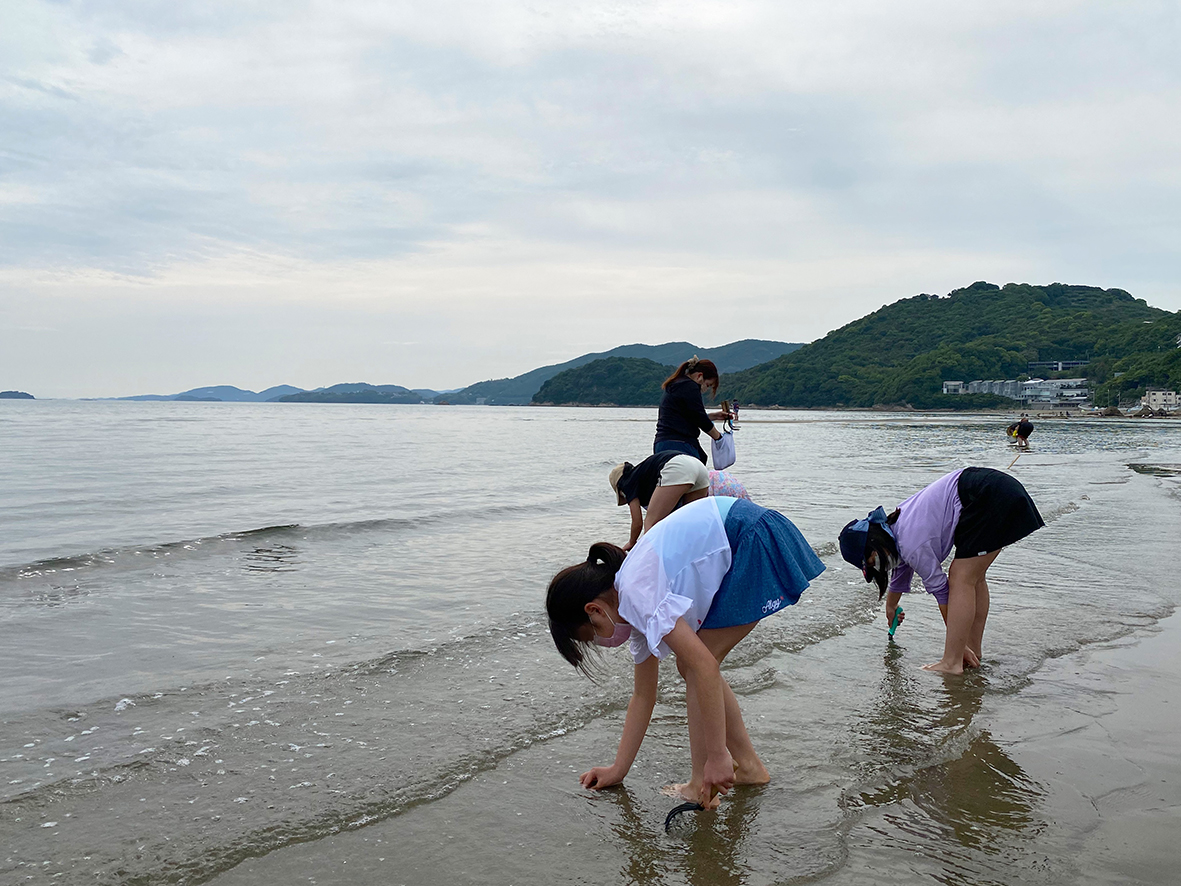 潮見表をみると昨日は今シーズン絶好の干潮日和。ということで、新舞子まで片道2時間半、潮干狩りに出掛けました。先週は山へ竹の子掘り、今週は海へ潮干狩りと、子どもたちは慣れない自然を満喫しました。