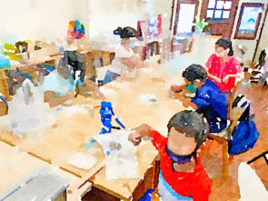 7月5週目(振替)土曜日つたえるコース。3体目のへんてこおばけを作り。今までにない色と形にしてとの注文に皆苦心していました。今回は小麦粘土で試作品を作り、次回フィモ粘土で本番を作ります。子どもたちの作品はガチャガチャで販売する計画も持ち上がり、これからが楽しみです。