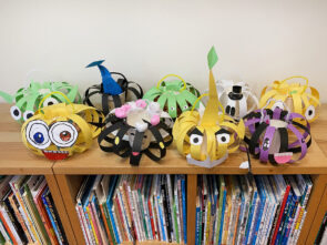 ハロウィンクッキーとハロウィンバスケットを作りました。短冊状に切った色画用紙を紙コップに円弧的に貼るとピグミン、リトルグリーンメン、ミニオンズなど色んなバスケットになりました。今回は時間配分がうまくいき、最後にクッキーのおやつタイムももてました。