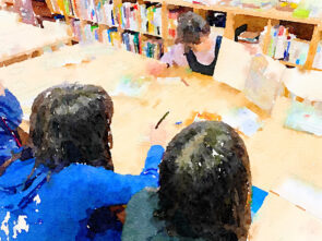 発表会で発表する絵と文を交互に進めます。今日は絵を描く日。絵本の推薦文の主張を論理的に裏付ける自分の経験を絵にします。その工程を通して自身を内照し、発表文を書き易くします。描画技法を指導するとさすがです。大きく構図された見応えのある下描きを描きました。