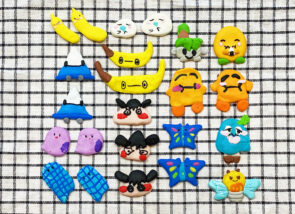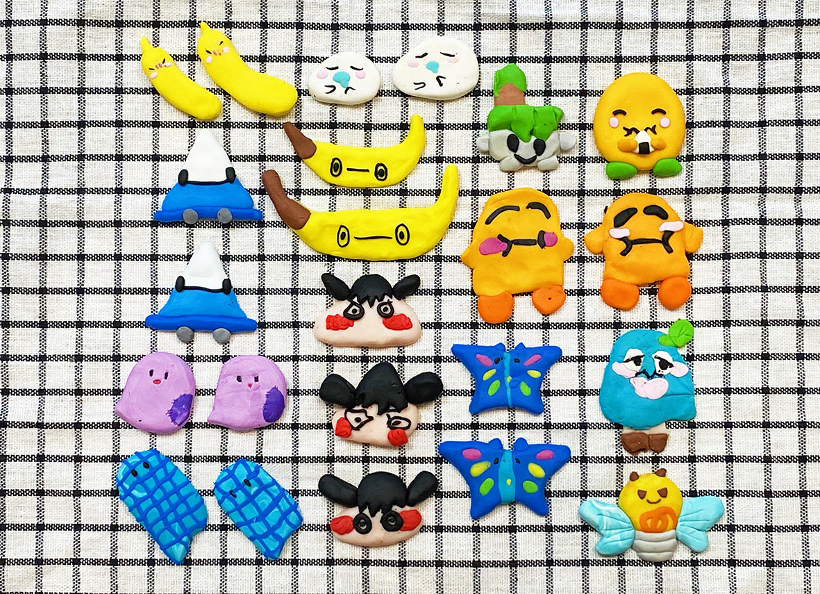 2週目は先週描いたキャラクターのイラストを元に、フィモ粘土で立体のアクセサリーにしました。粘土が固かった為に作るのに大変苦労しました。しかし不平をいうことなく熱心に完成させました。お喋りも盛んで賑やかなレッスンです。