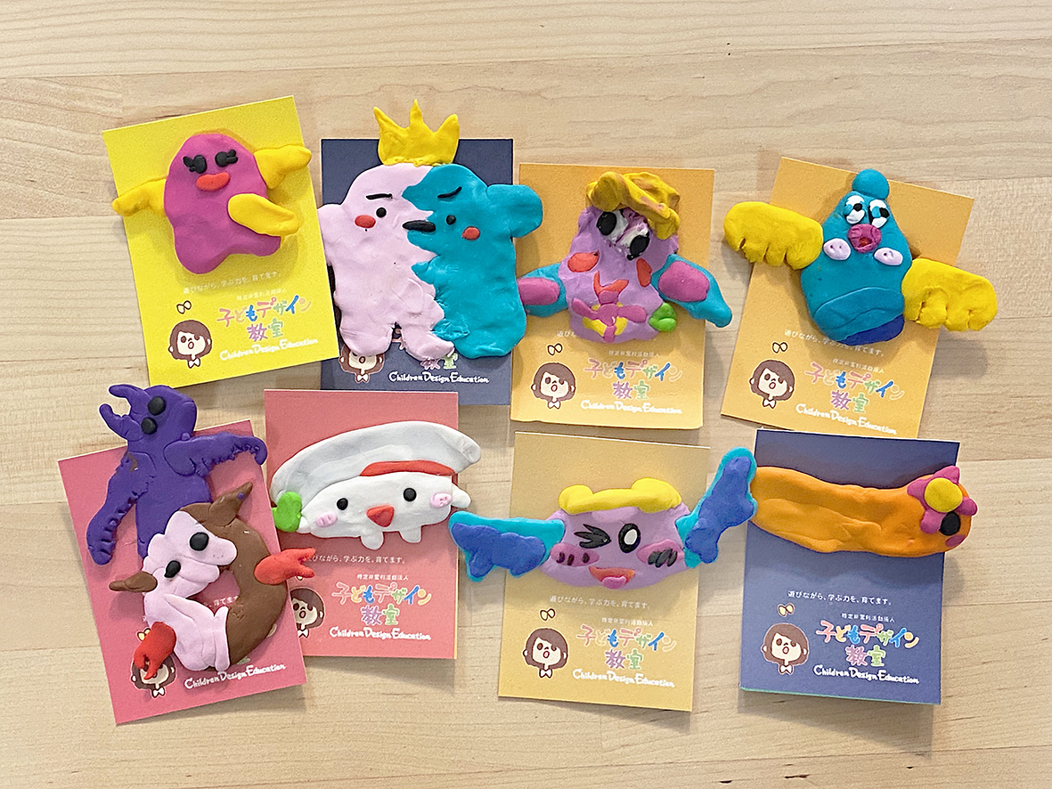 冬の装いを豊かにするオリジナルキャラクターのピンバッジを作りました。真っ白な画用紙からアイデアを生み出し、オーブンで焼くと陶器になるフィモ粘土でピンバッジにしました。さらにキャラクターの名前や性格を決めて、キャラの住む世界を文章と絵にしました。皆大満足になったのは言うまでもありません