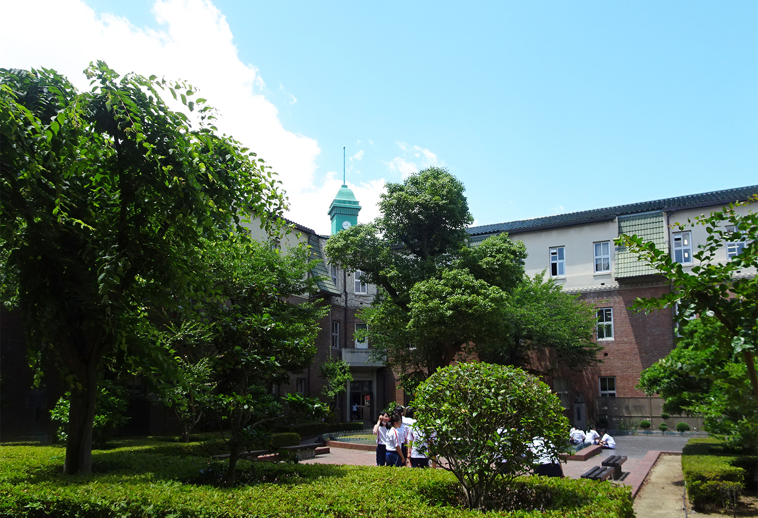 6月に入り、緑が一層輝きを増す母校・工芸高校の中庭。私はお隣のデザイン教育研究所で講師をしています。6月から娘がこの工芸高校VD科で教育実習を受けています。教官の先生に「娘をよろしくお願いします〜」とは、また親バカ全開です。