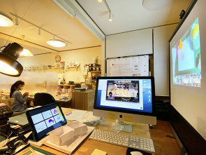 6月1週目のレッスン。今回から教室内にiPadカメラを設置し、子どもたちの作業が遠隔でも手に取って分かるようになりました、また、講師の作業方法を大きなスクリーンに映し、子どもたちが課題を的確に理解できるようにしました。