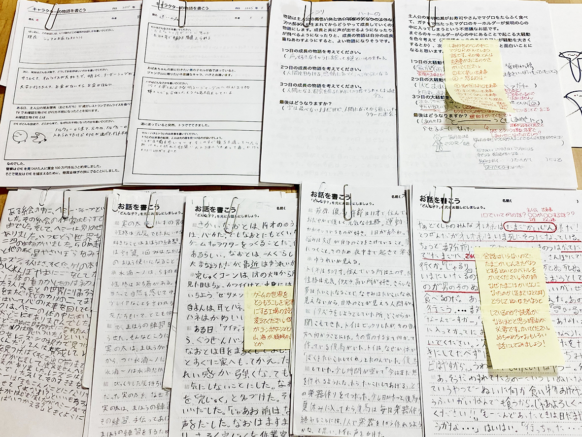 夏休みも終わりが見えてきましたが、作業の方は、ご覧の物語原稿のタイプ打ちをする子もいれば、3種類あるキャラクターの内のまだ1種類目で苦戦する子もいるという、歴然と差が長くなってきました。夏休みも終わるので、遅れている子は来週3時から補講をすることになりました。
